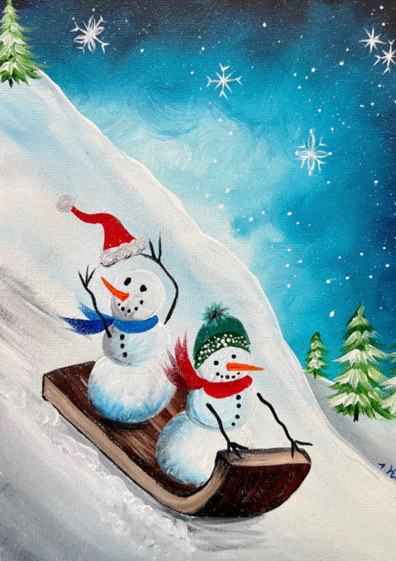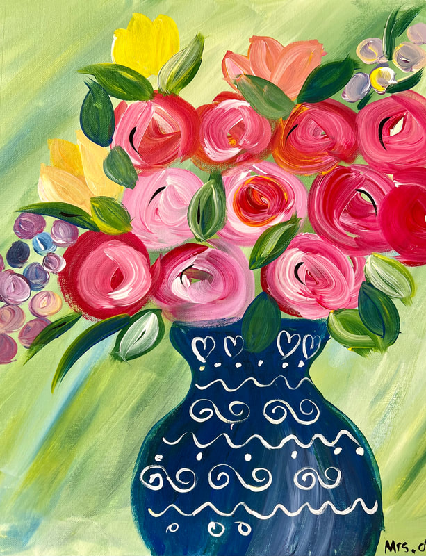 Our paint parties are 3 hours long, private to your group, and hosted in person by Mrs. Otte.