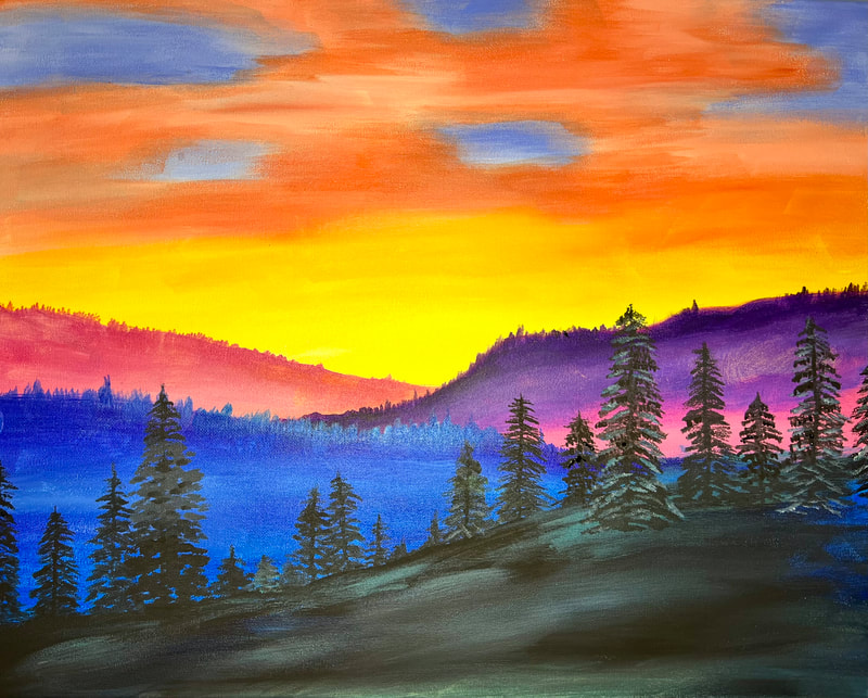 Mountain sunrise: an 18 years old birthday paint party!